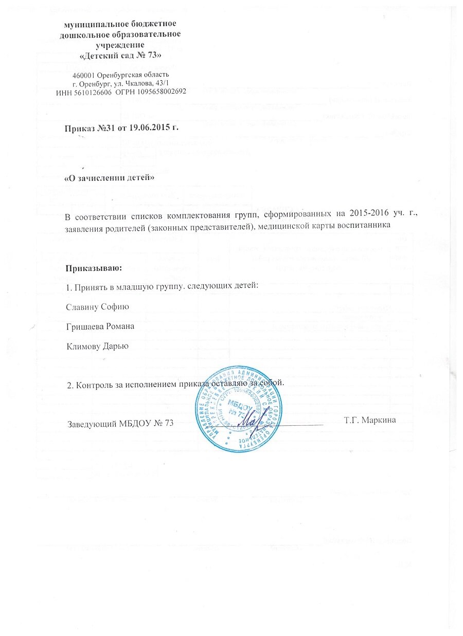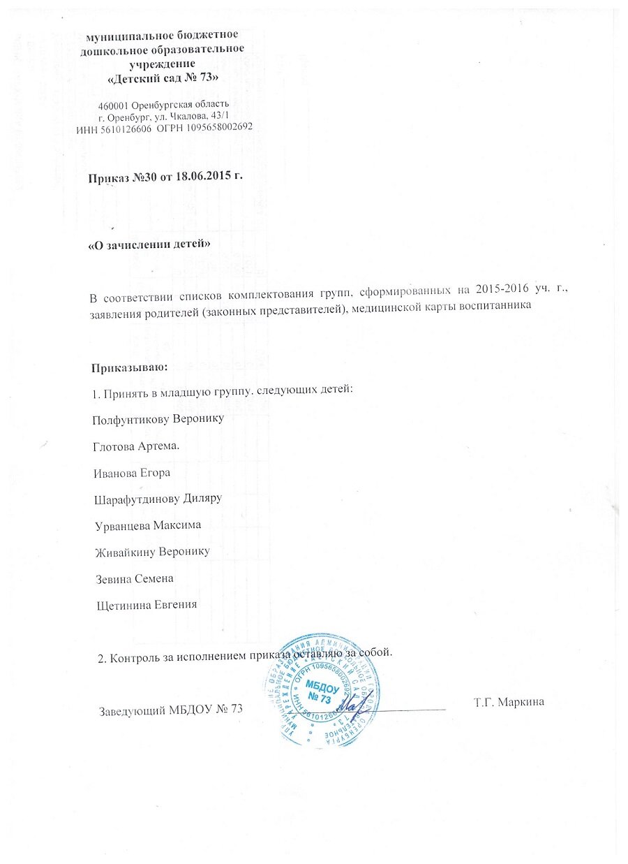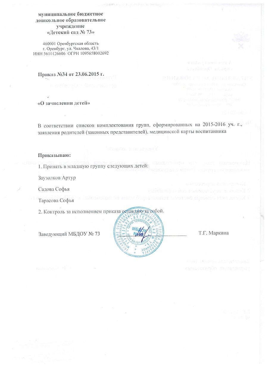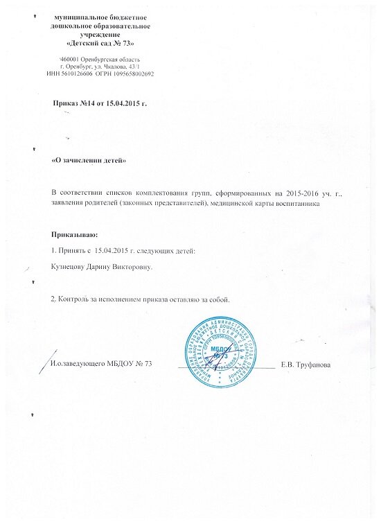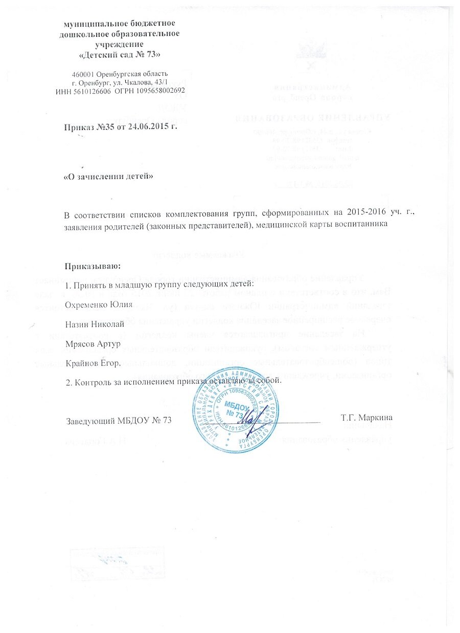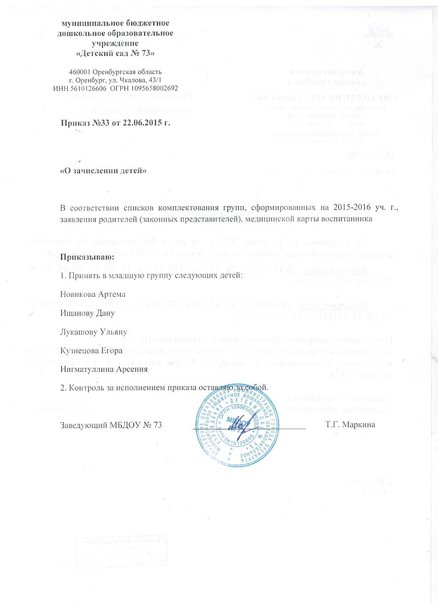 Приказы о зачислении детей 2016 год |