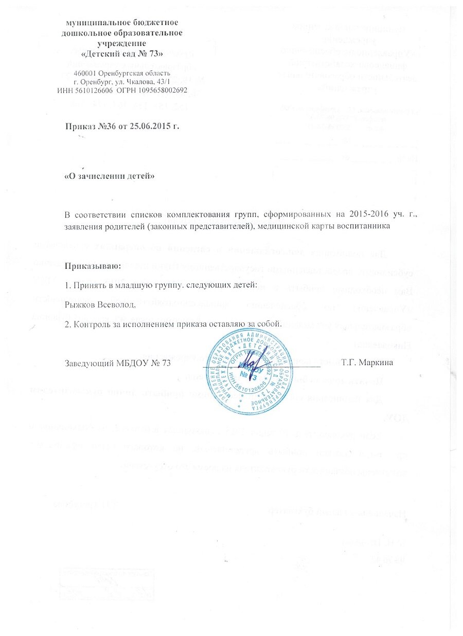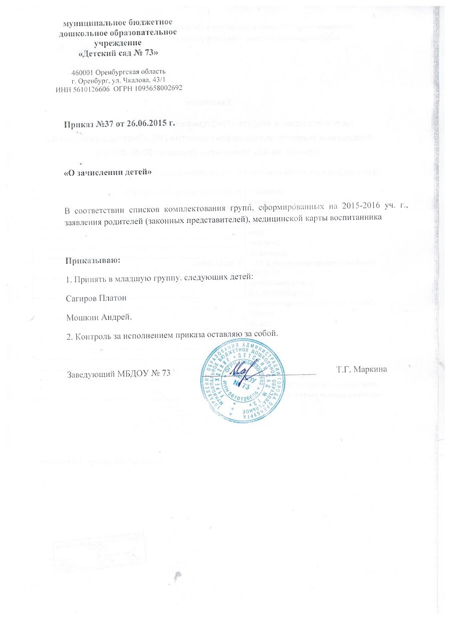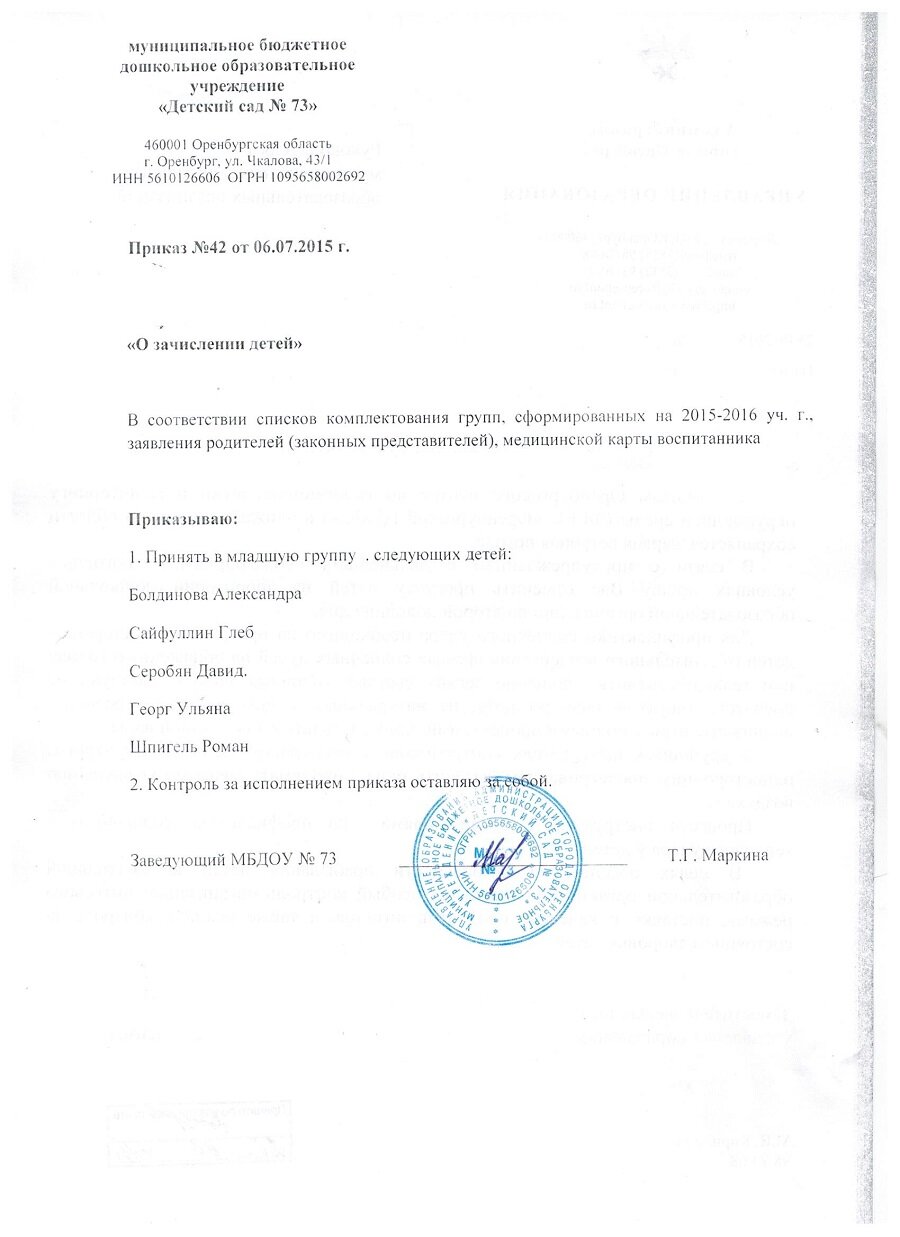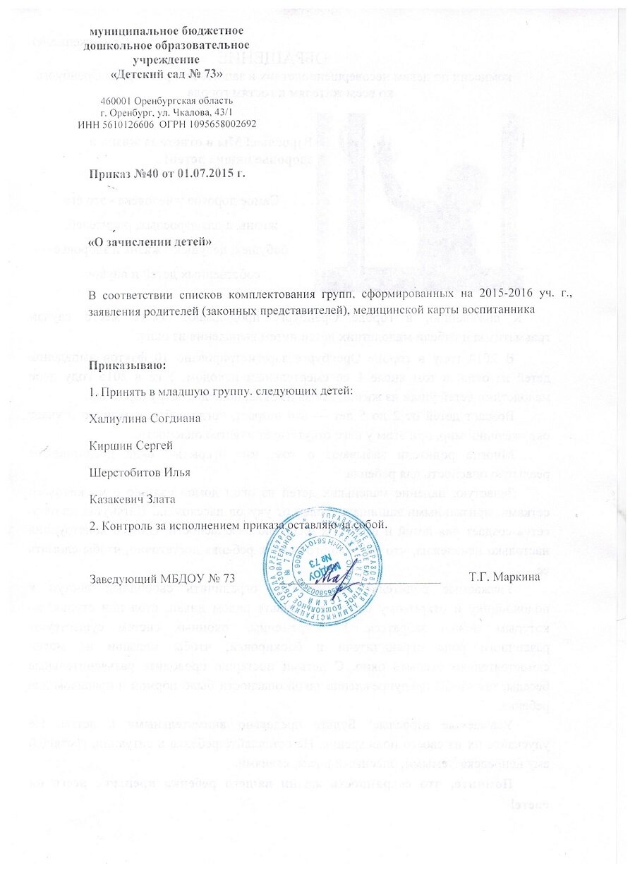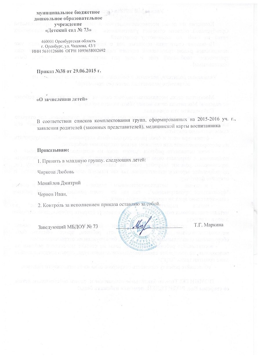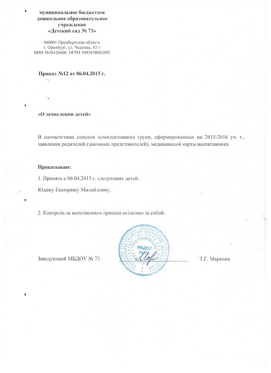 Приказы о зачислении детей 2016 год |