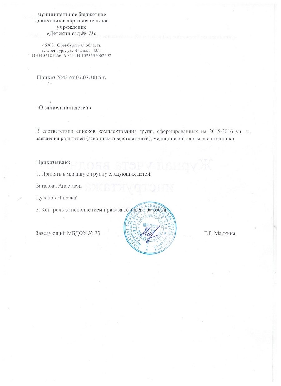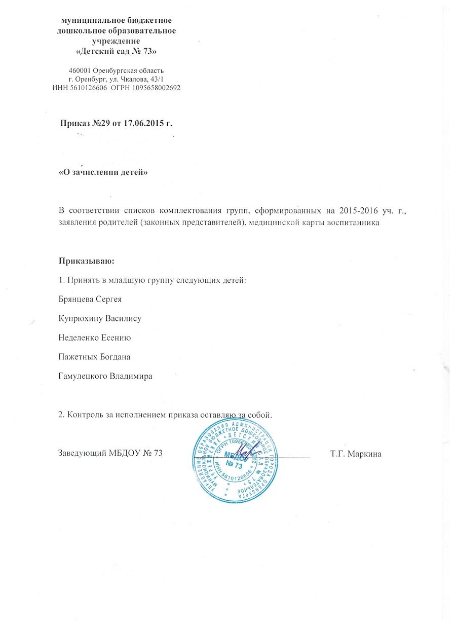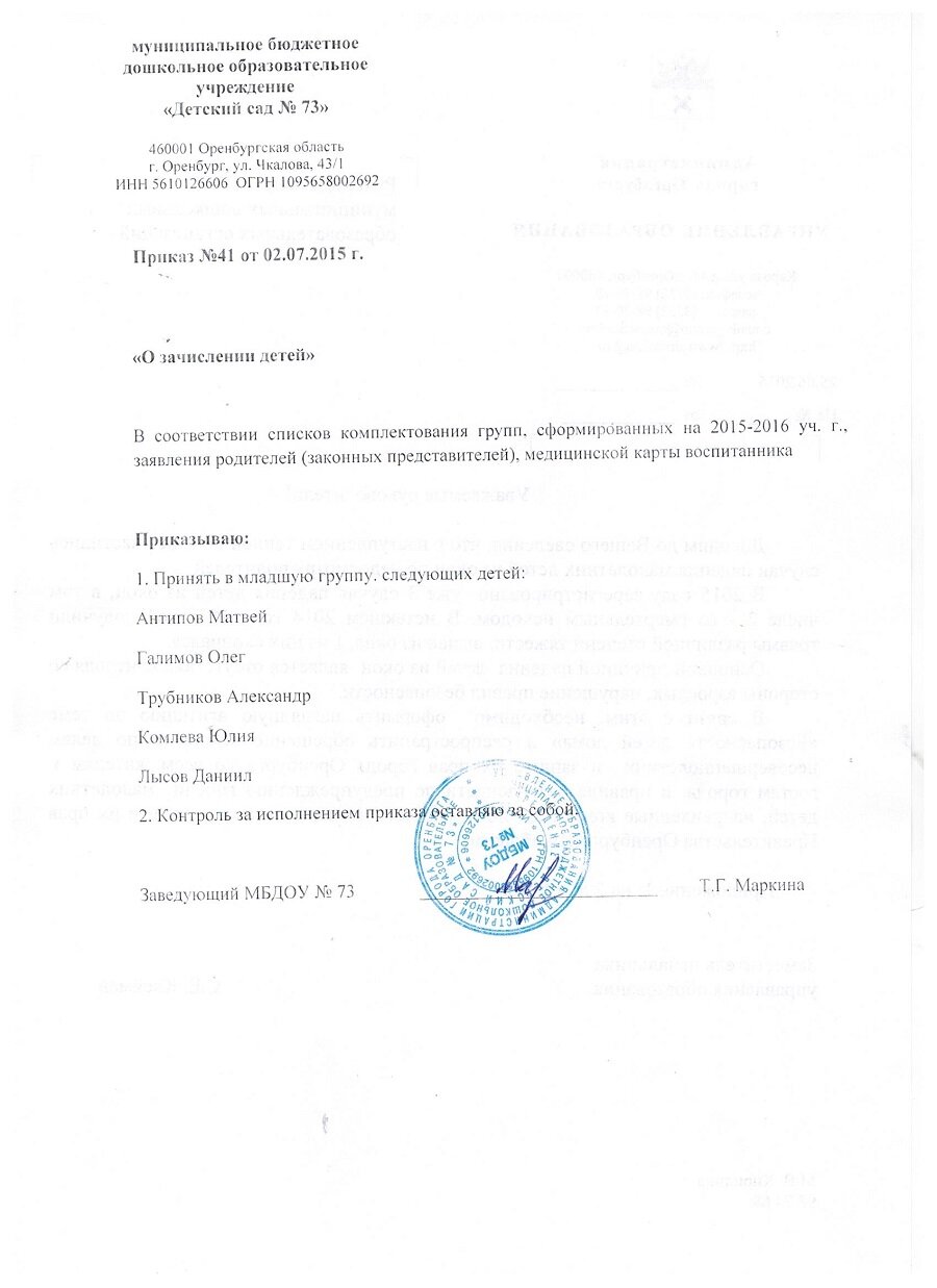Приказы о зачислении детей 2017 год |